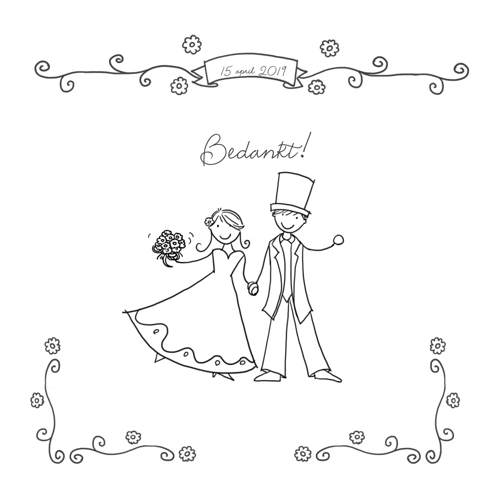 Lief getekende kaart om de gasten te bedanken voor hun aanwezigheid. Bekijk hier de bijpassende trouwkaart.