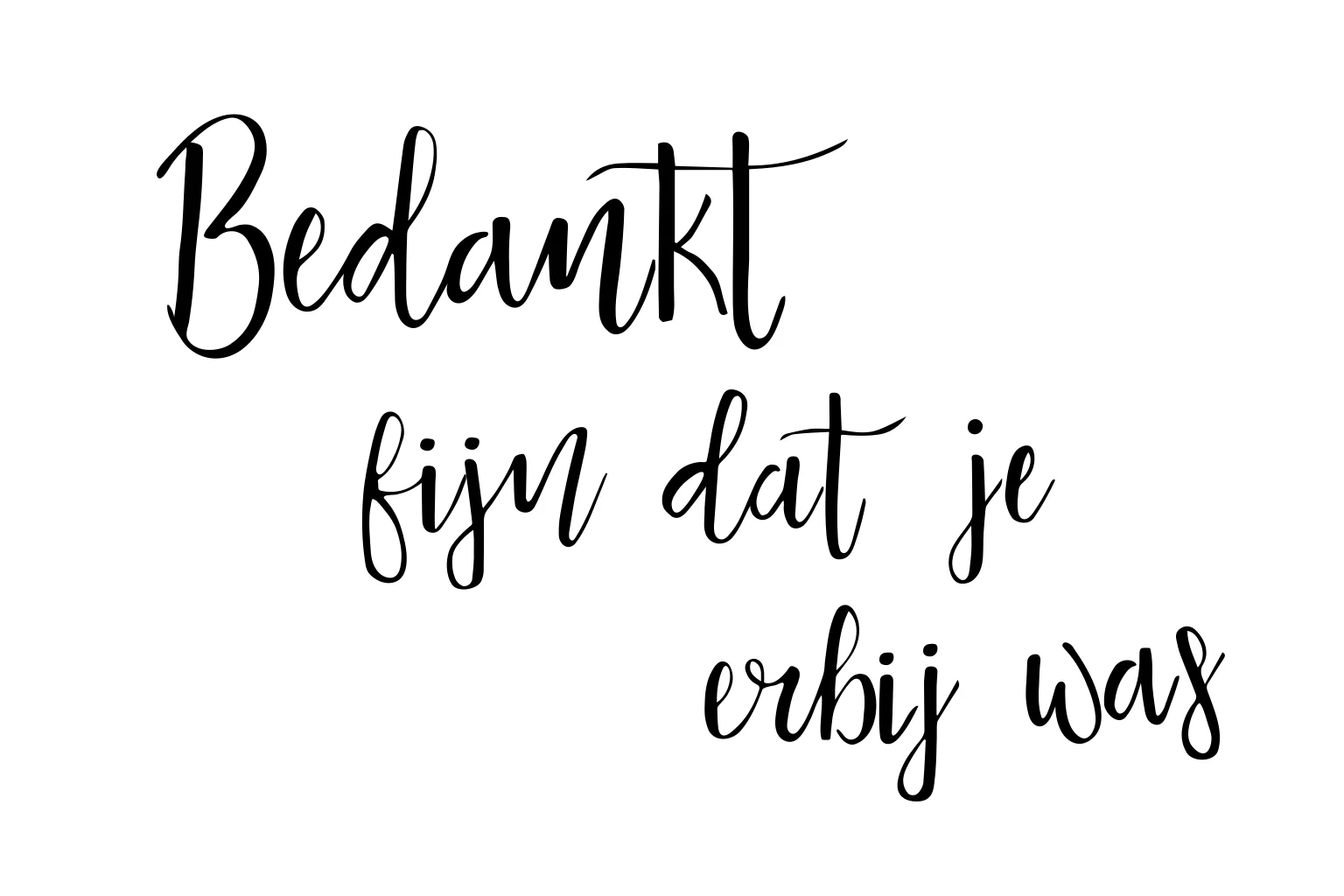 Mooie bedankkaart met sierlijke letters. Dit lettertype is overigens geheel naar wens aan te passen. Leuk met die geïllustreerde ringen erbij!