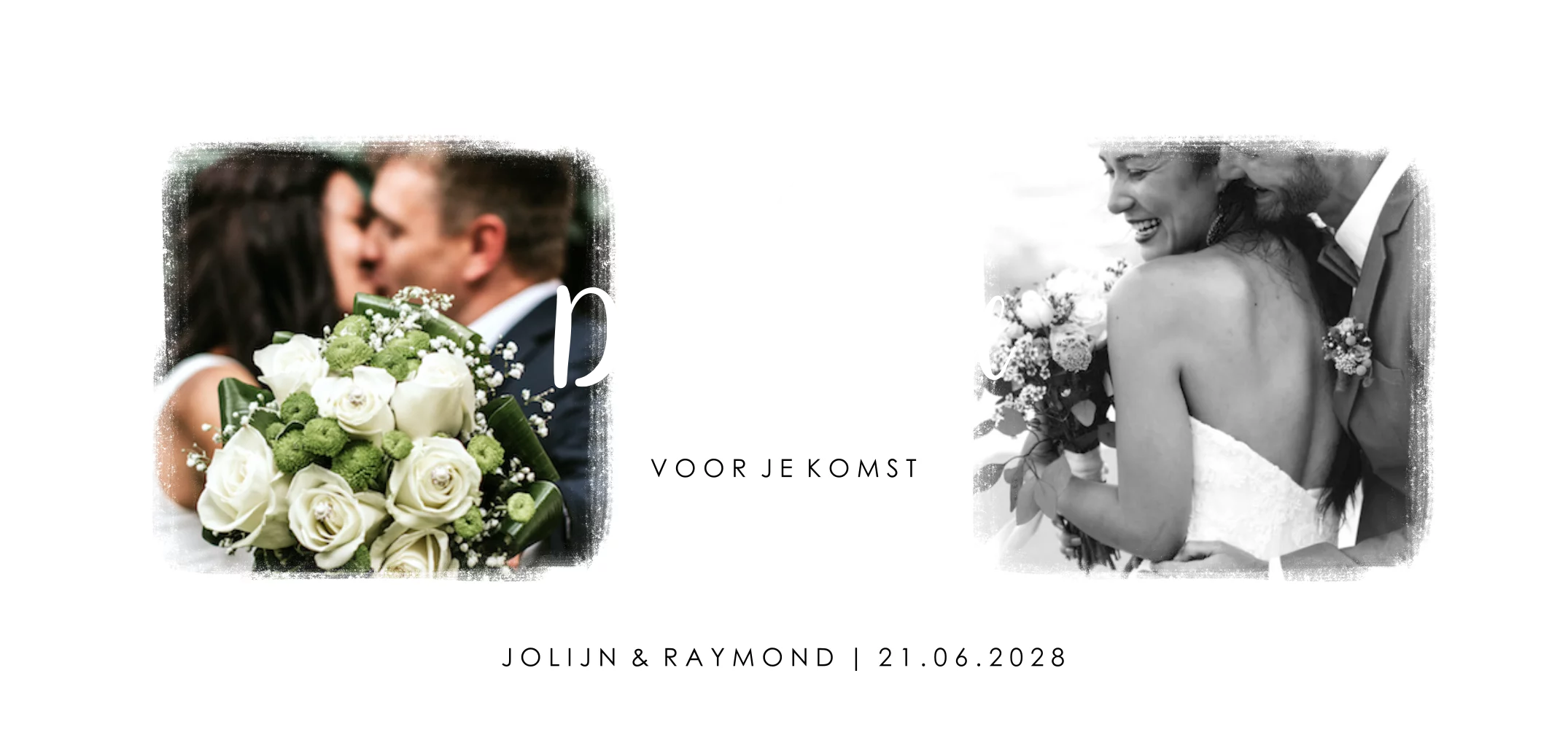 Lieve bedankkaart trouwen. Op de witte voorkant van de bedankkaart kun je twee persoonlijke foto's van jullie mooie bruiloft plaatsen. Romantisch door de toevoeging van hartjes.
