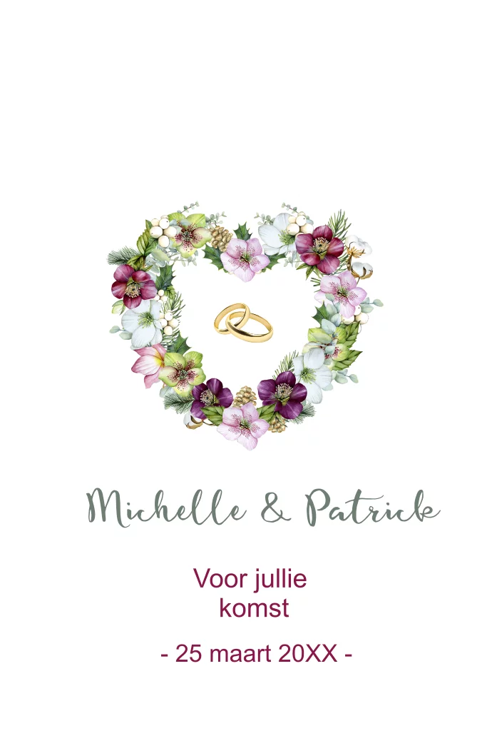 Bedankt voor trouwen met hart van helleborusbloemen.