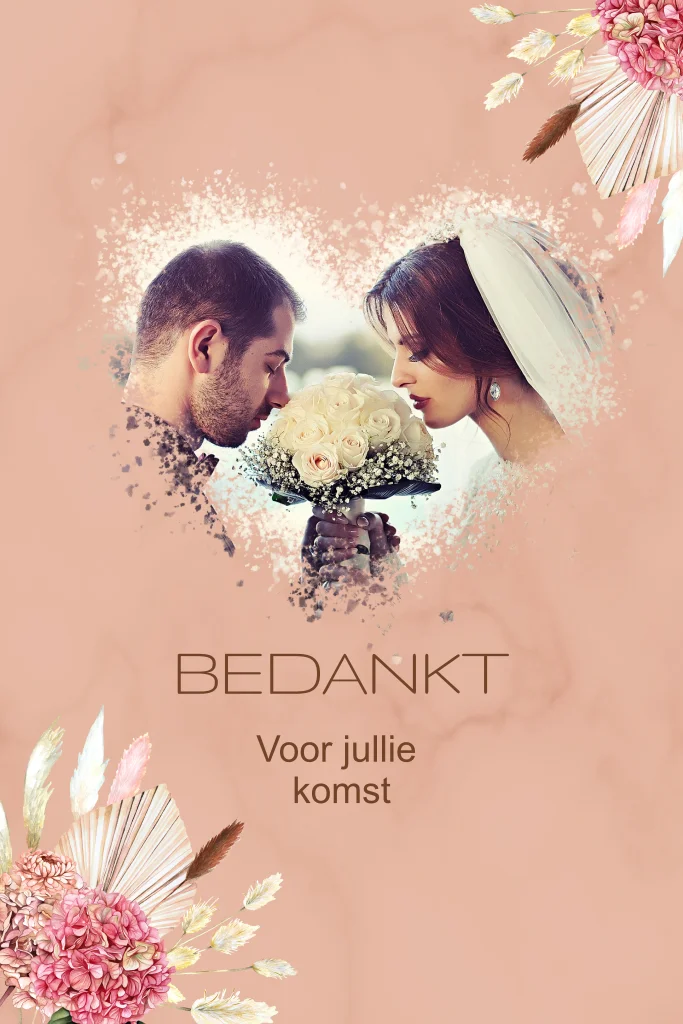 Bedankt trouwen hortensiabloemen en droogbloemen