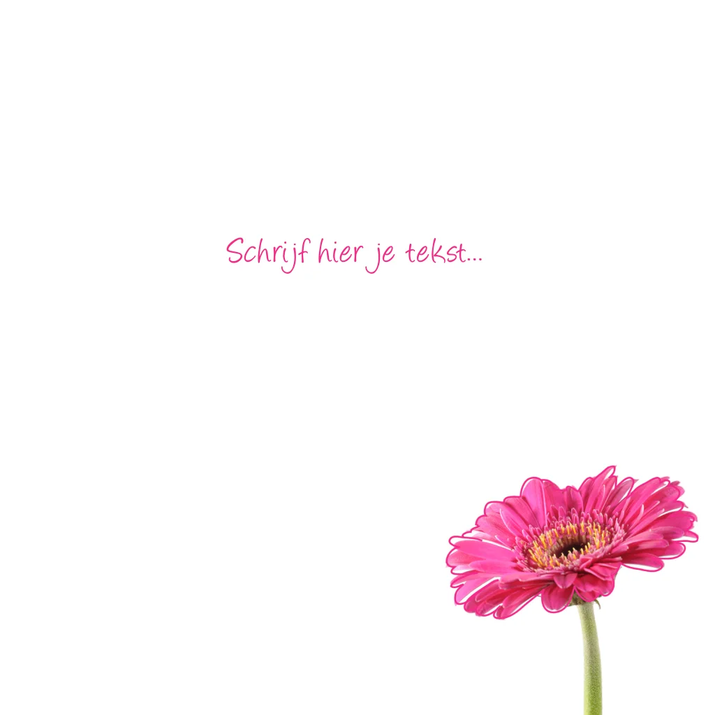 Wil je een leuke kaart sturen naar een collega die gaat trouwen? Dit kaartje is een hippe mix tussen een foto van een gerbera en schattige hartjes.