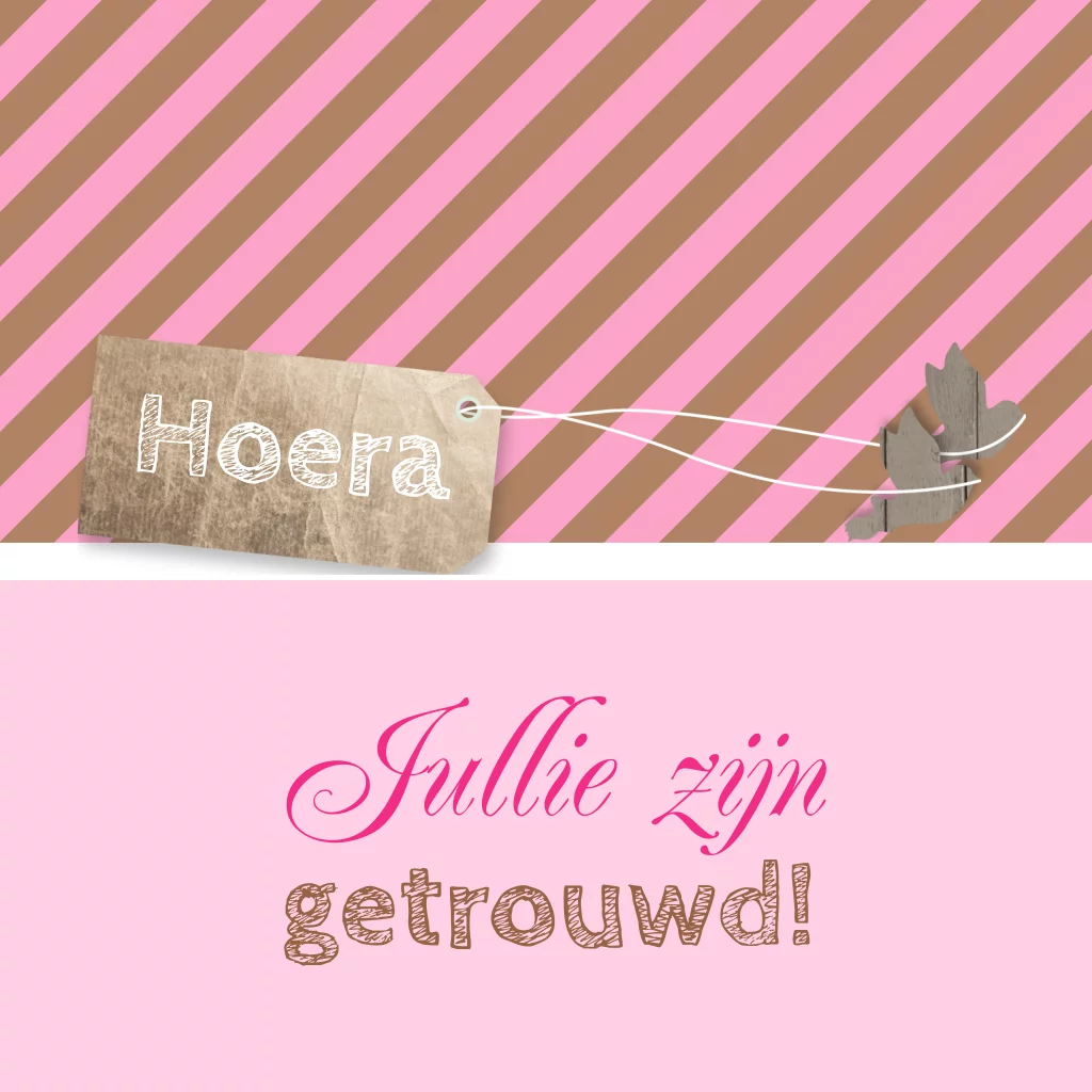 De kleur roze staal centraal op deze kaart om een (aanstaand) echtpaar een mooi huwelijk te wensen.
