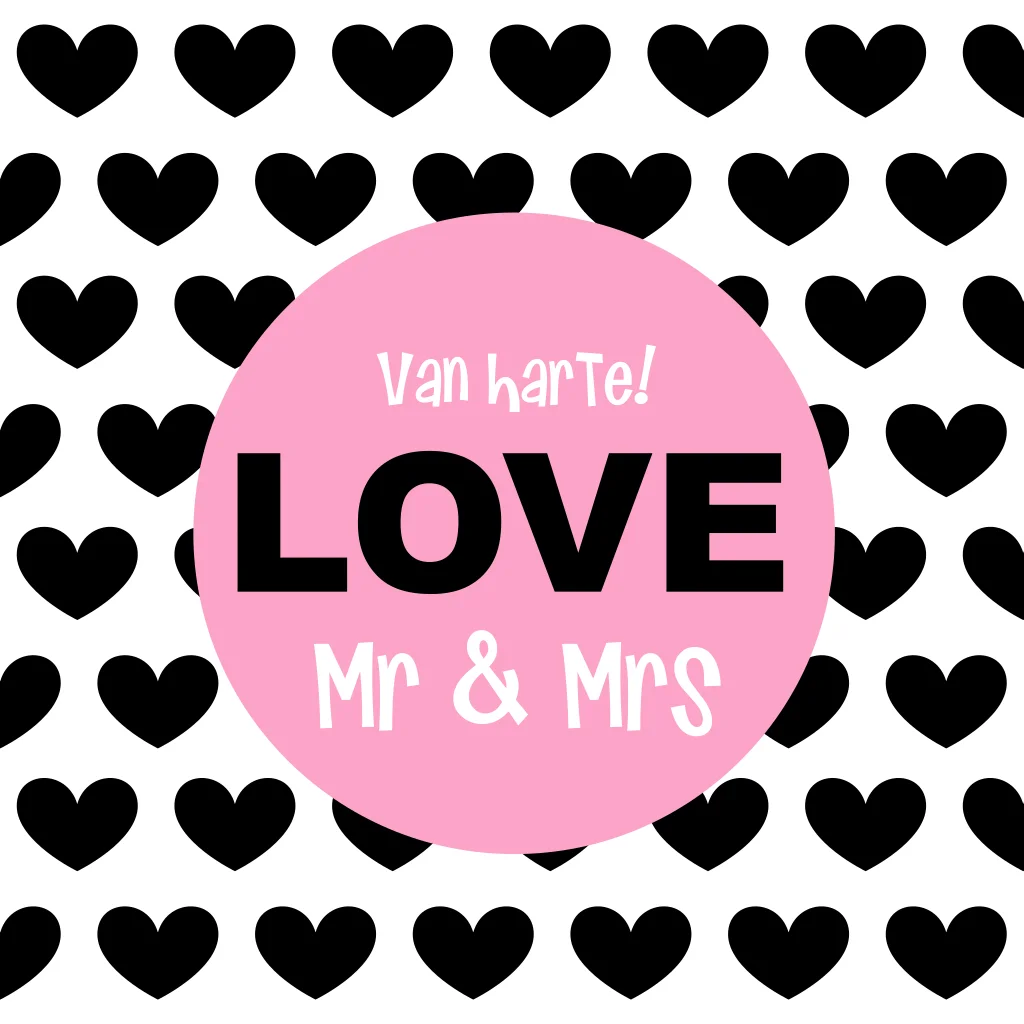 Hippe felicitatiekaart met hartjespatroon om het verse echtpaar een mooie toekomst te wensen.