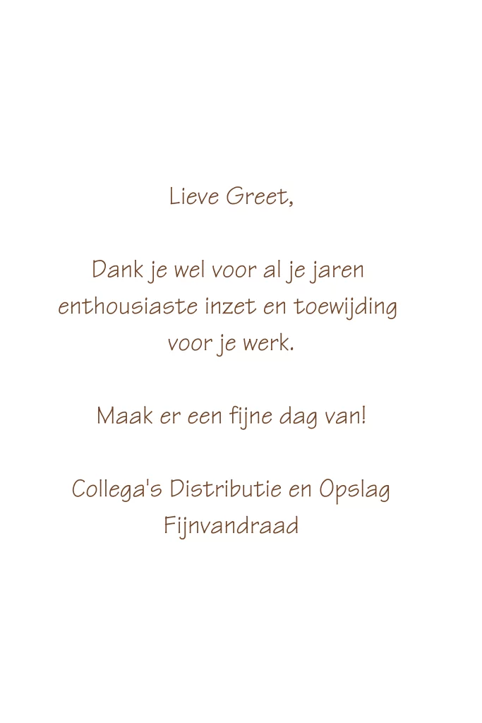 Een vrolijk gele felicitatiekaart met witte letters en een hartje, speciaal voor een fijne collega. Schrijf aan de binnenkant een persoonlijke felicitatie!