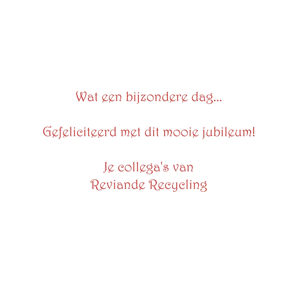 Op zowel de voorkant als aan de binnenkant kan de tekst veranderd worden. Schrijf een persoonlijke felicitatie en stuur de kaart aan de jubilaris.