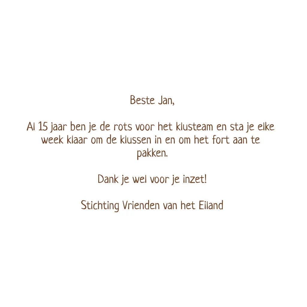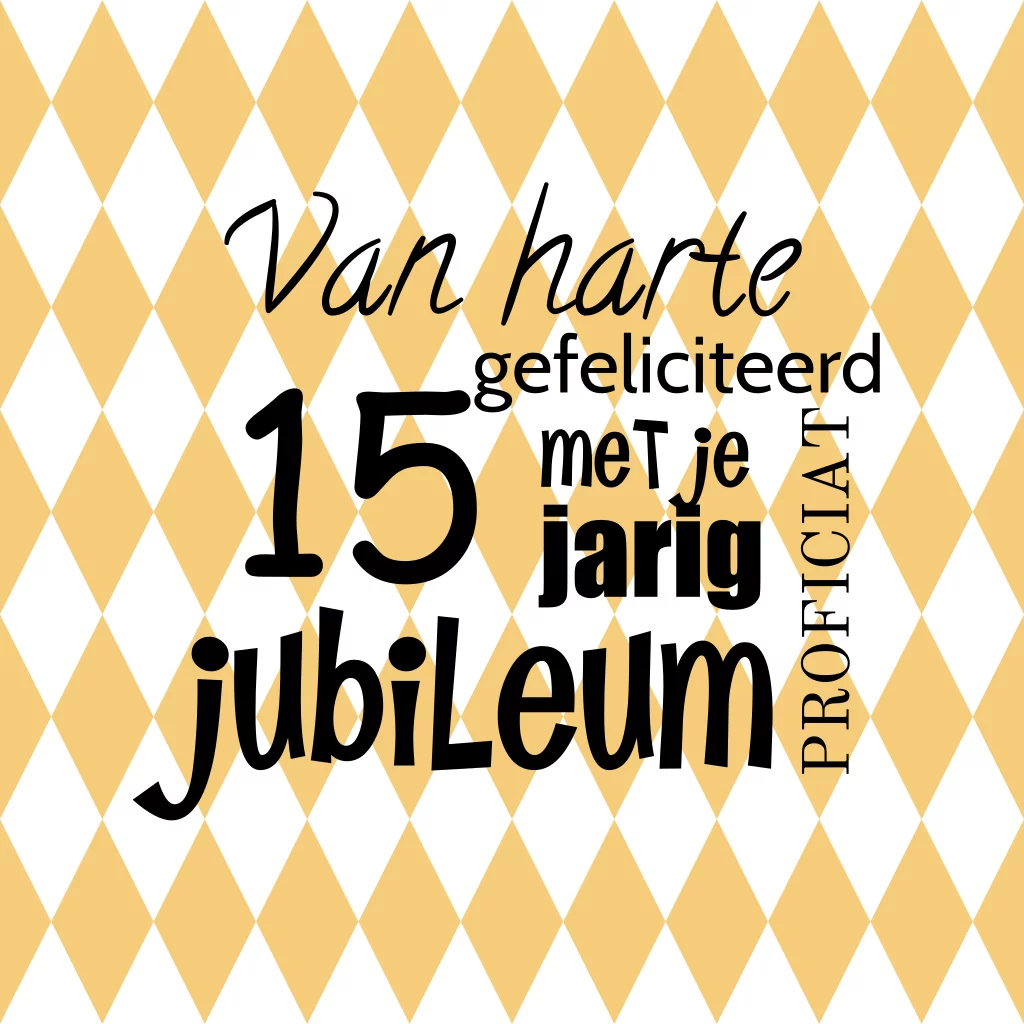Met deze wenskaart stuur je de felicitaties aan de jubilaris. De teksten aan binnen- en buitenkant zijn eenvoudig aan te passen.