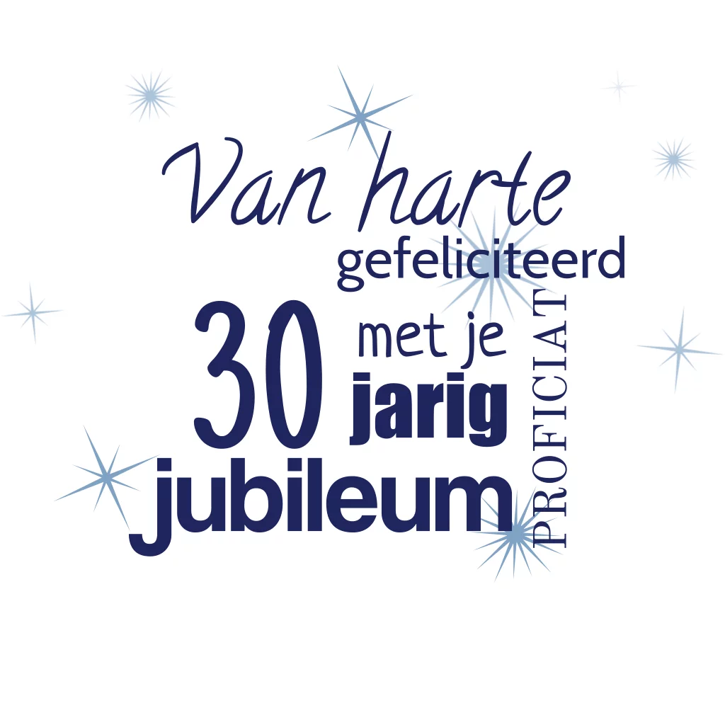 Stuur een felicitatiekaart voor iemand die een jubileum viert. De teksten en het getal aan de voorkant is eenvoudig aan te passen. Schrijf aan de binnenkant een persoonlijke tekst.