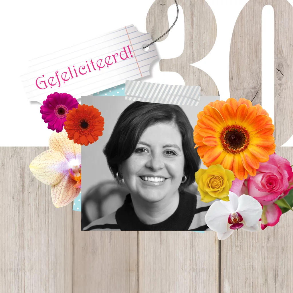 Dan zijn felicitaties en een bijpassende wenskaart op zijn plaats! Maak een leuke fotokaart en zet de jubilaris in de bloemetjes. Vervang eenvoudig de teksten.