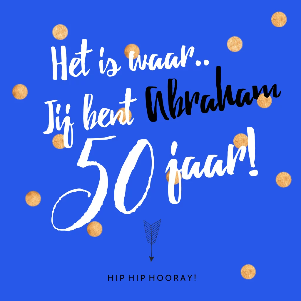 Felicitatiekaart in hippe vrolijke kleur met leuke typografie voor verjaardag man 50 jaar.