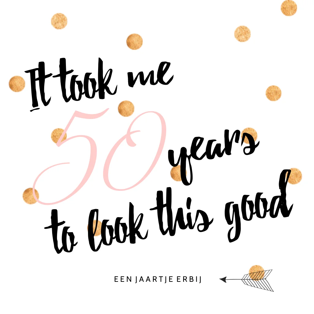 Hip kaartje met gouden stippen voor een vijftigjarige verjaardag vrouw.