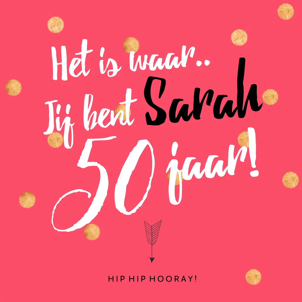 Verras de jarige job met dit leuke typografische kaartje in vrolijke kleur en met stipjes.