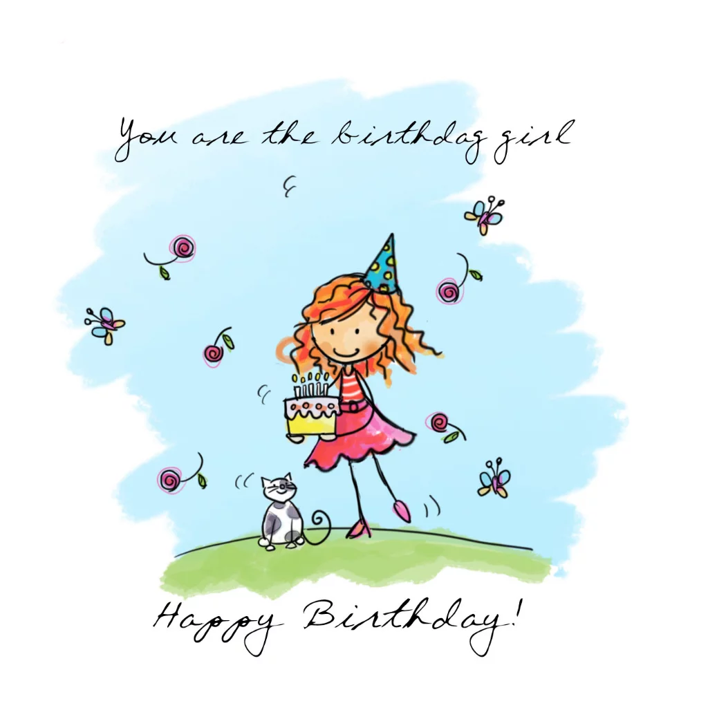 Lief geïllustreerd verjaardagskaartje met bloemen die uit de hemel vallen.