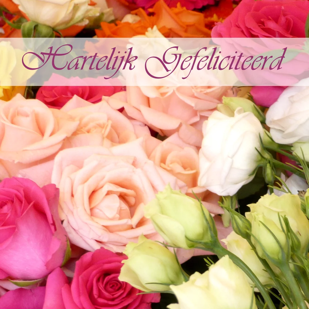 Vrolijke verjaardagskaart met rozen in vele kleuren