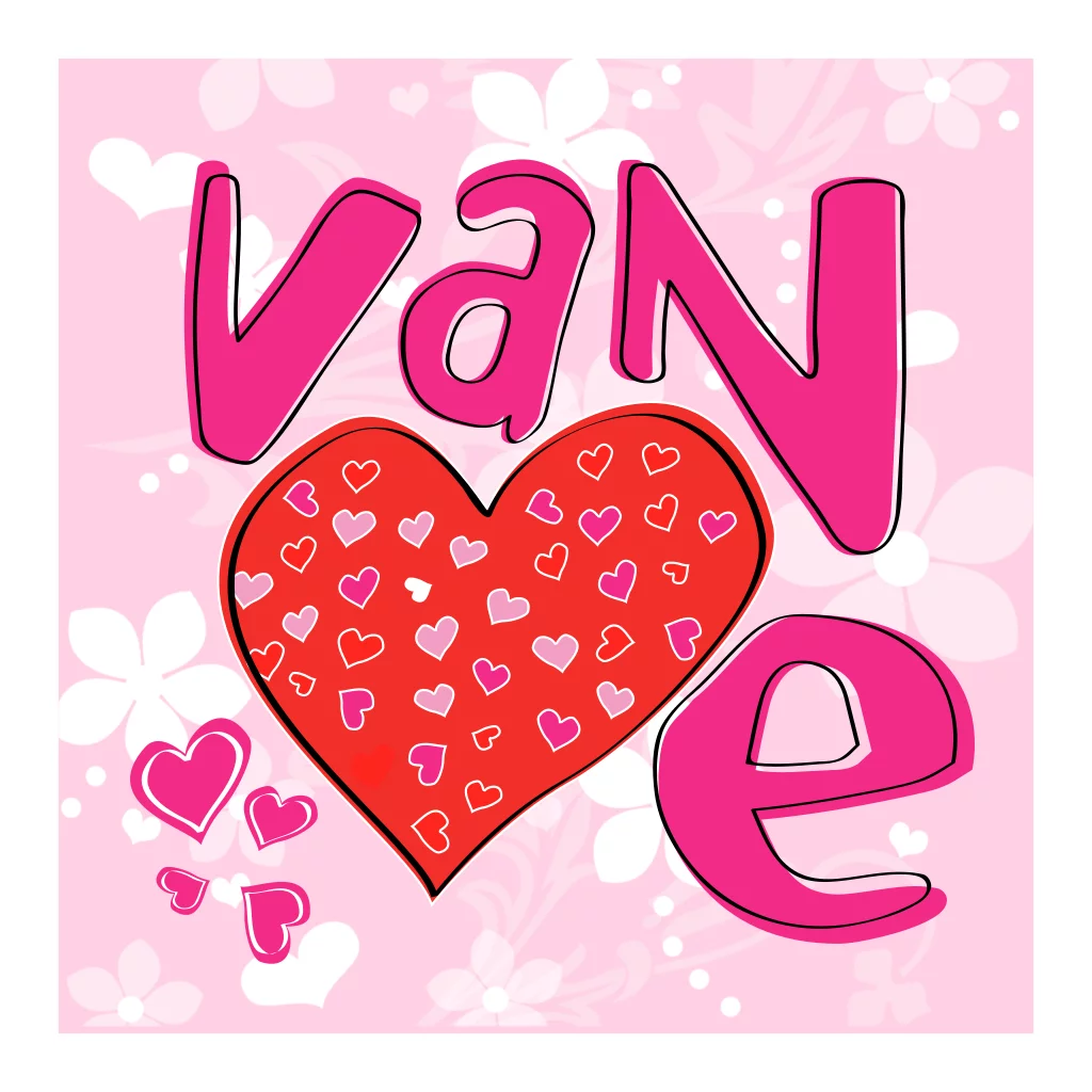 Felicitatiekaart met getekende letters en rood hart met kleine hartjes