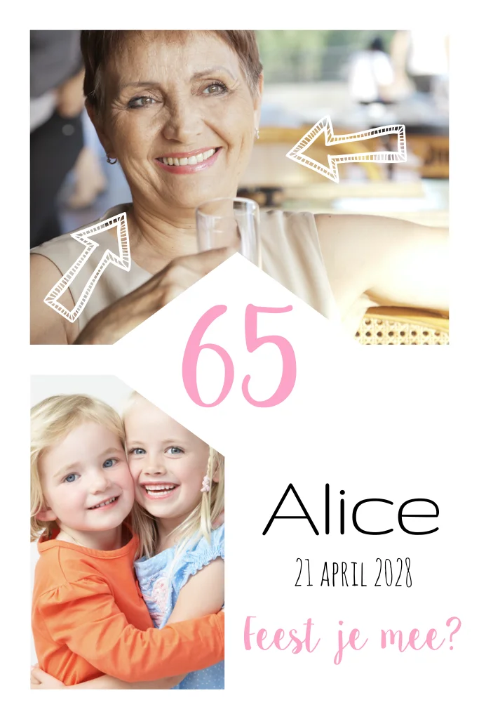 Nodig vrienden en familie uit met deze mooie fotokaart. Voeg een persoonlijke foto van toe van jezelf en een foto van de kleinkinderen. Mooi om deze fotokaart te combineren met een felle kleur envelop!