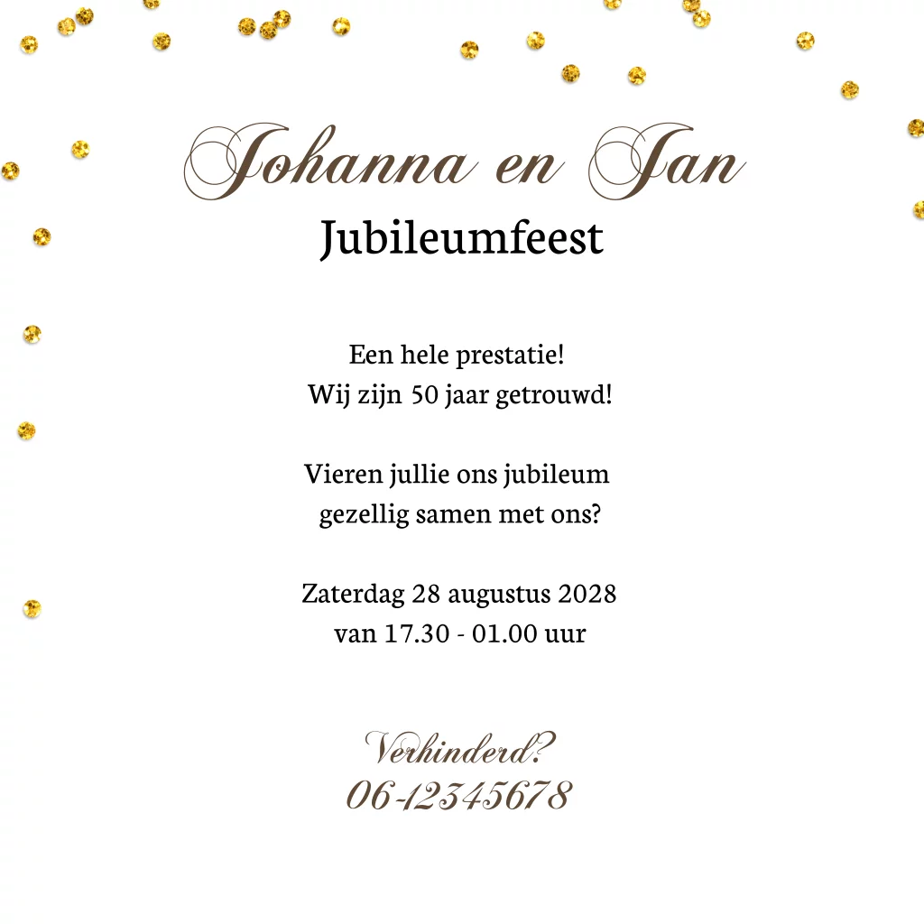 Uitnodiging vijftig jarig huwelijk met foto en confetti