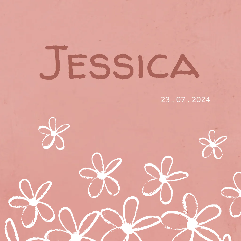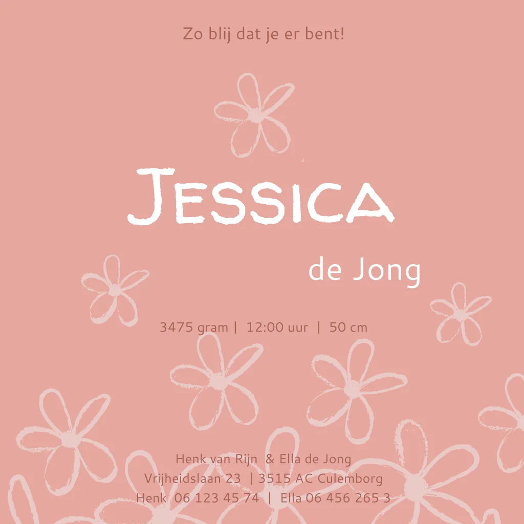 Hip geboortekaartje met in roséfolie geprinte bloemen