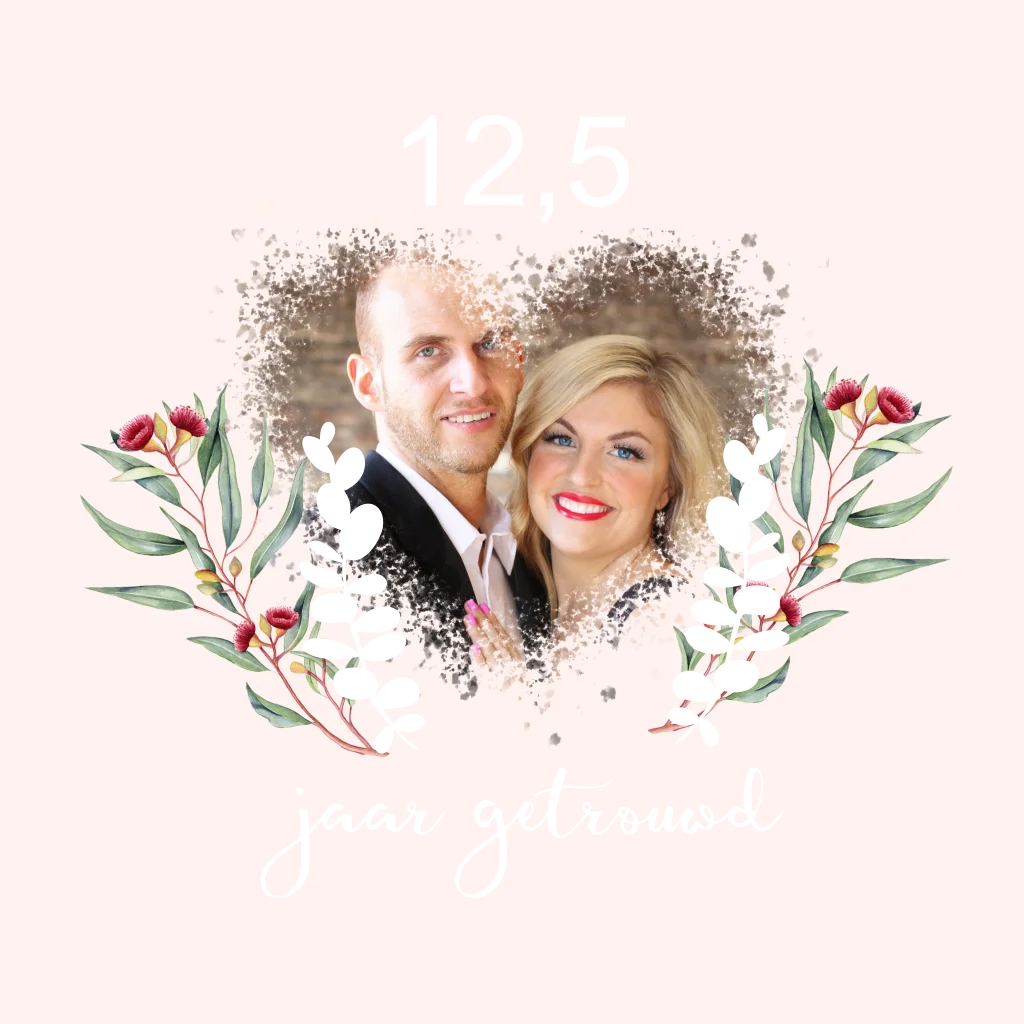 Uitnodiging huwelijksjubileum met eucalyptusen echte folie.