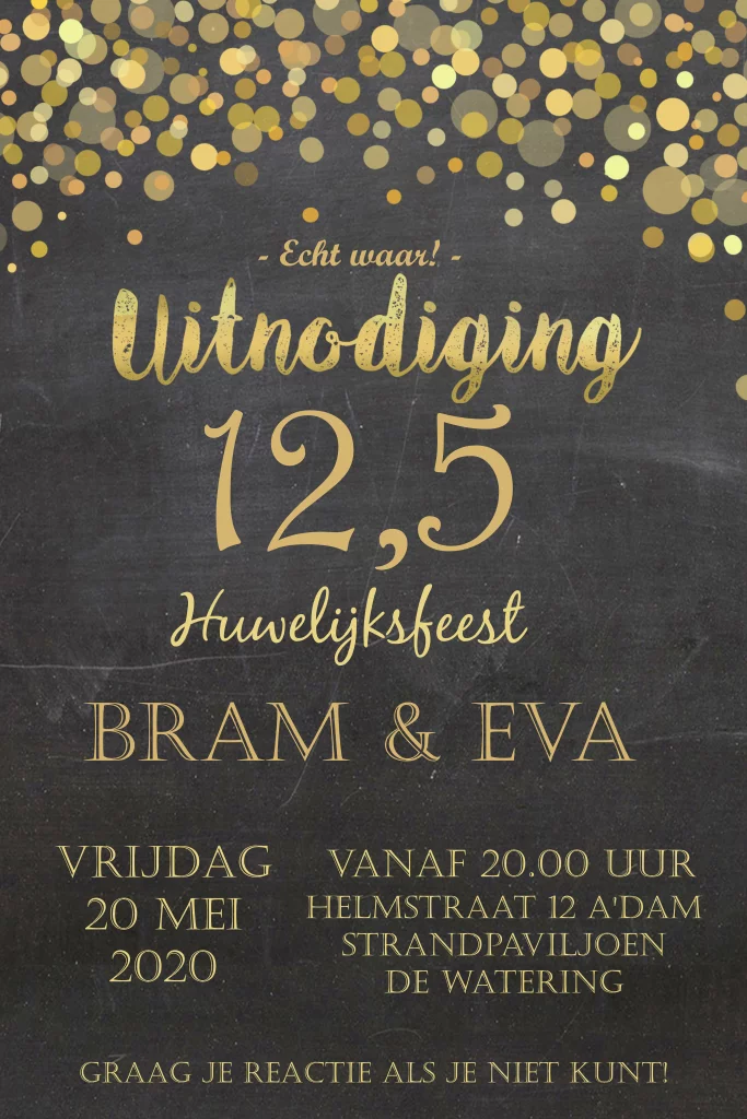 Mooie staande uitnodigingskaart voor een 12,5 jarig huwelijksjubileum, tekst is geheel aanpasbaar. Maak het af door te kiezen voor een gouden envelop.