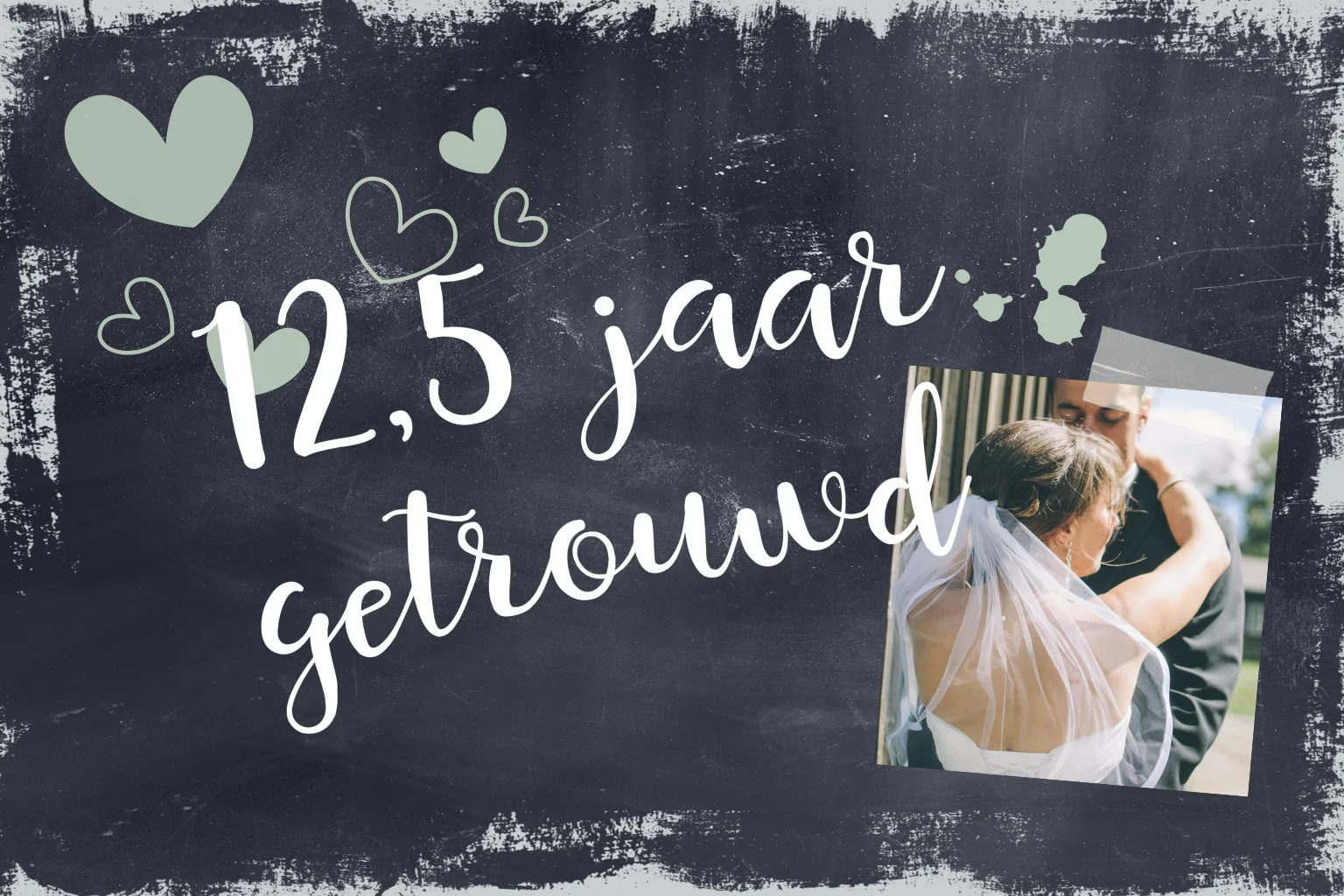 Uitnodiging 12,5 jaar getrouwd met hartjes en foto