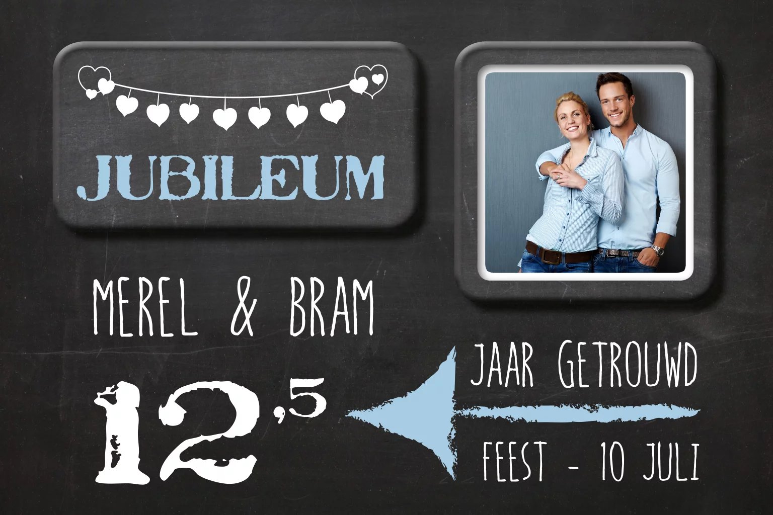 Hippe krijtbord uitnodiging 12,5 jaar huwelijk met foto