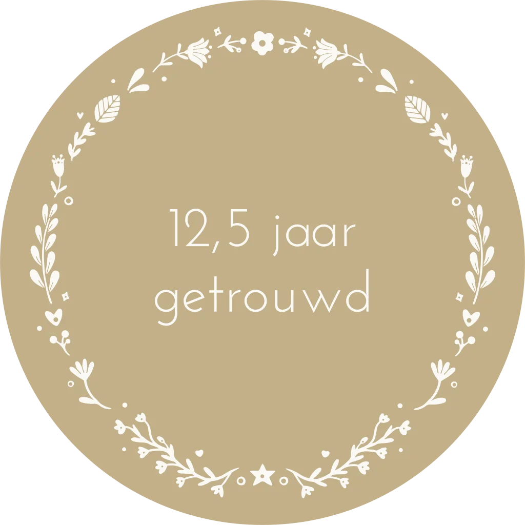 Vier 12,5 jaar liefde met onze unieke ronde jubileumuitnodiging, omringd door geïllustreerde takjes. Een perfecte mix van elegantie en liefdevol design voor jullie speciale dag!
