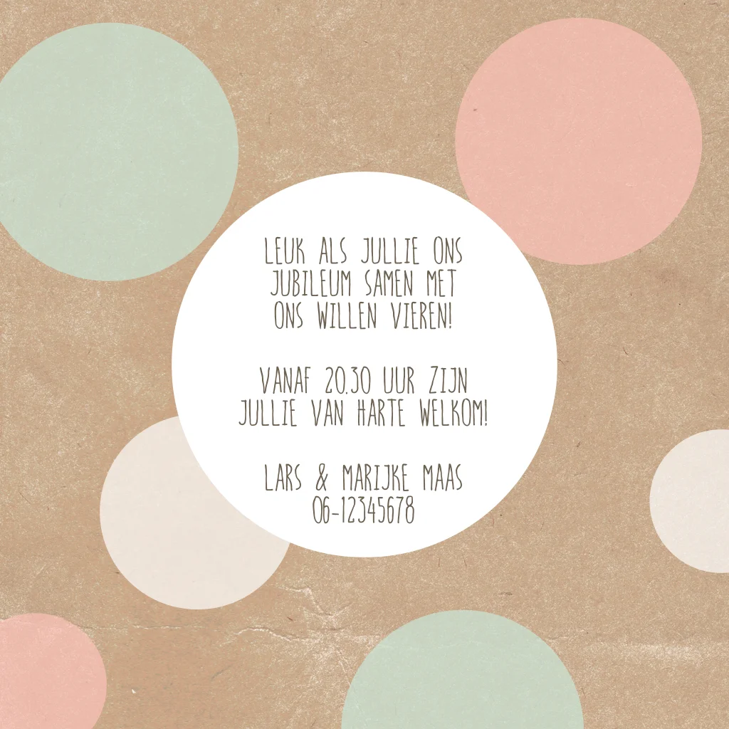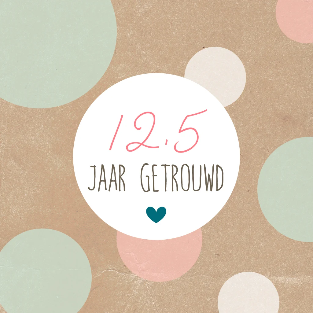Trendy 12,5 jarig huwelijksjubileum kaart met transparante rondjes in zachte kleuren.