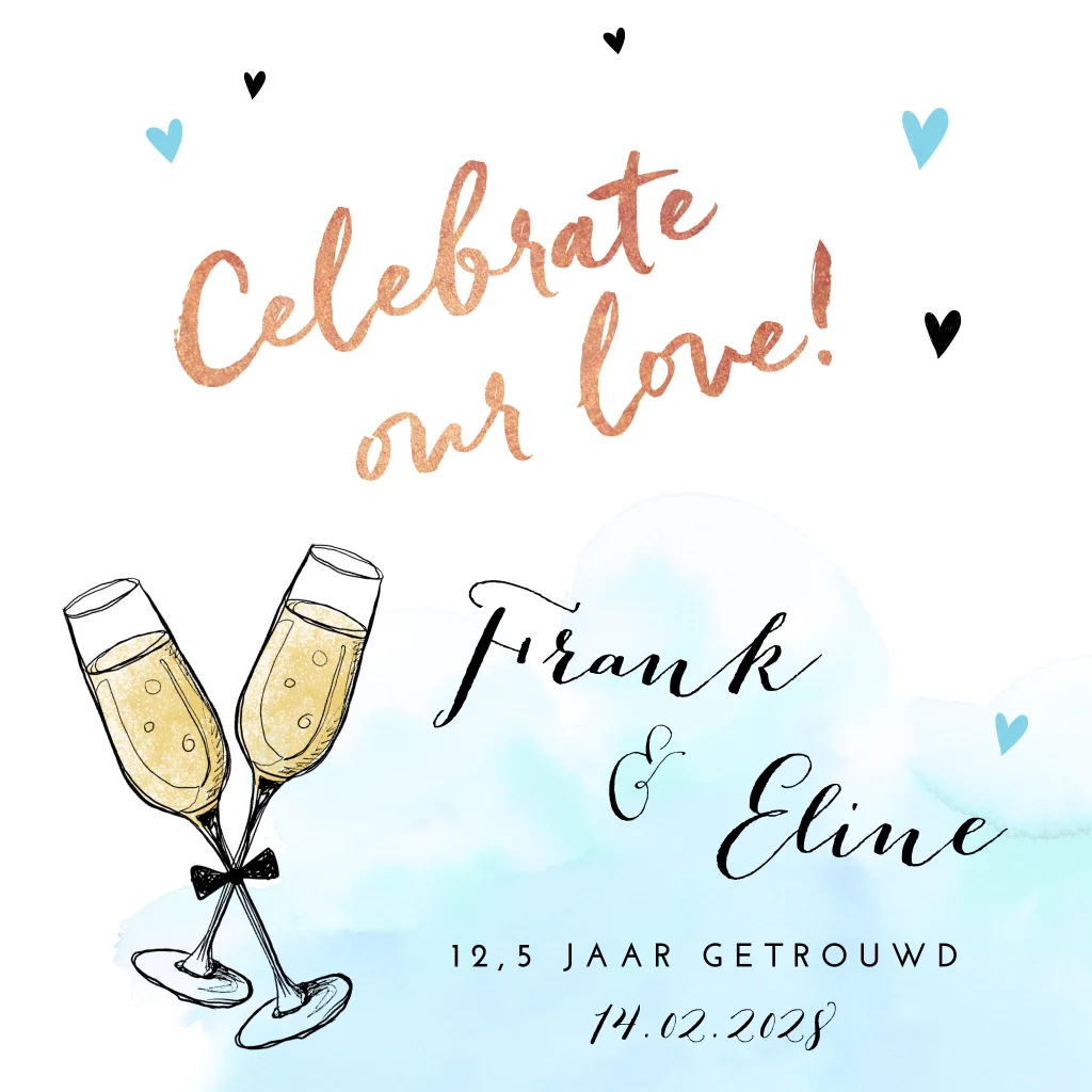 Uitnodiging 12,5 jaar getrouwd met champagne