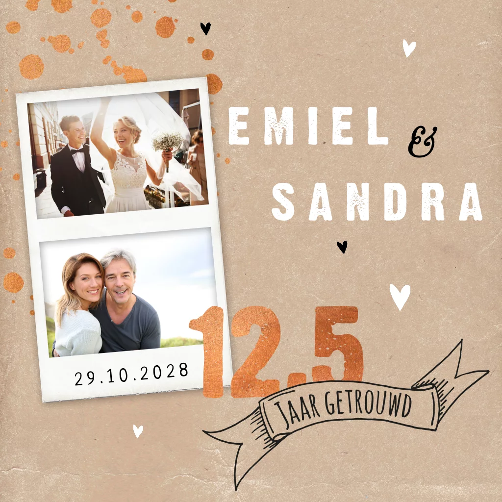 Uitnodiging 12,5 jaar getrouwd met foto en bronzen accenten