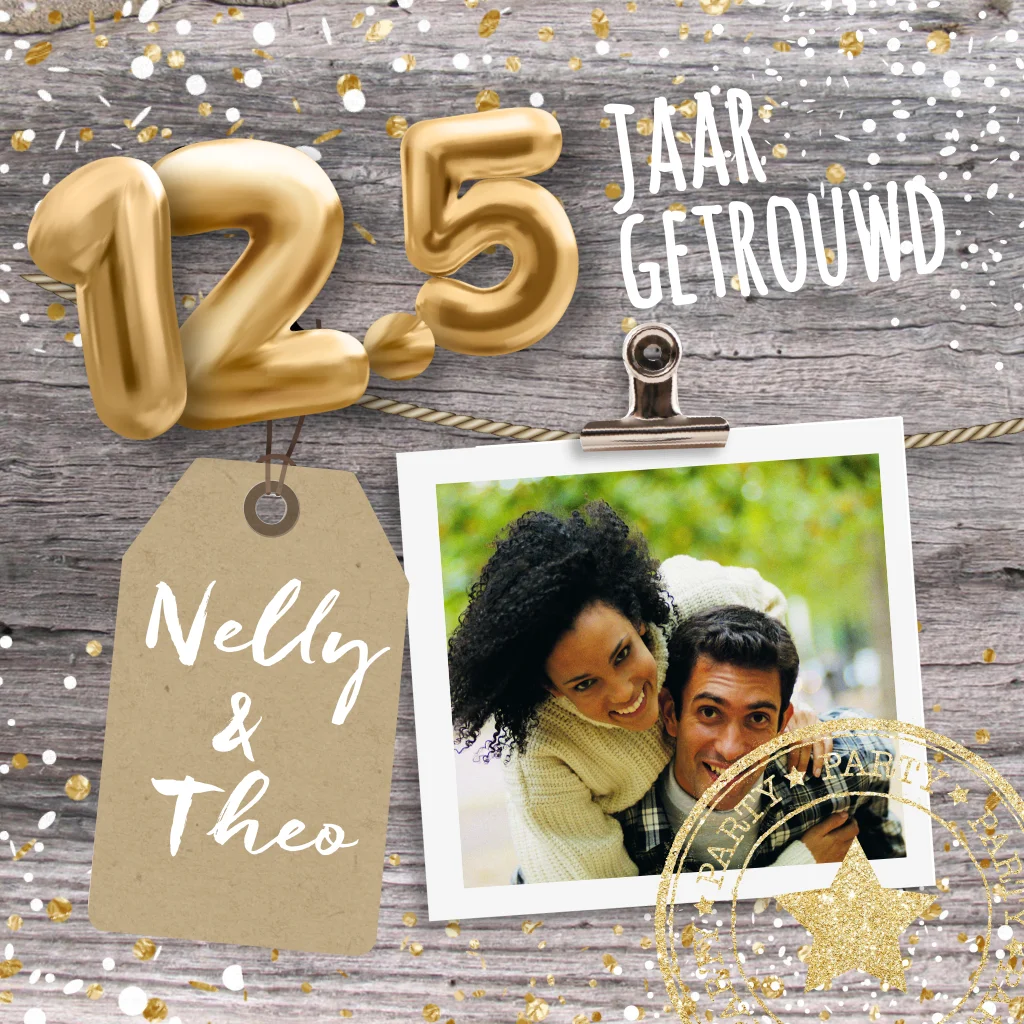 Vier 12,5 jaar liefde met deze jubileumkaart. Pas het ontwerp naar wens aan in onze online editor.