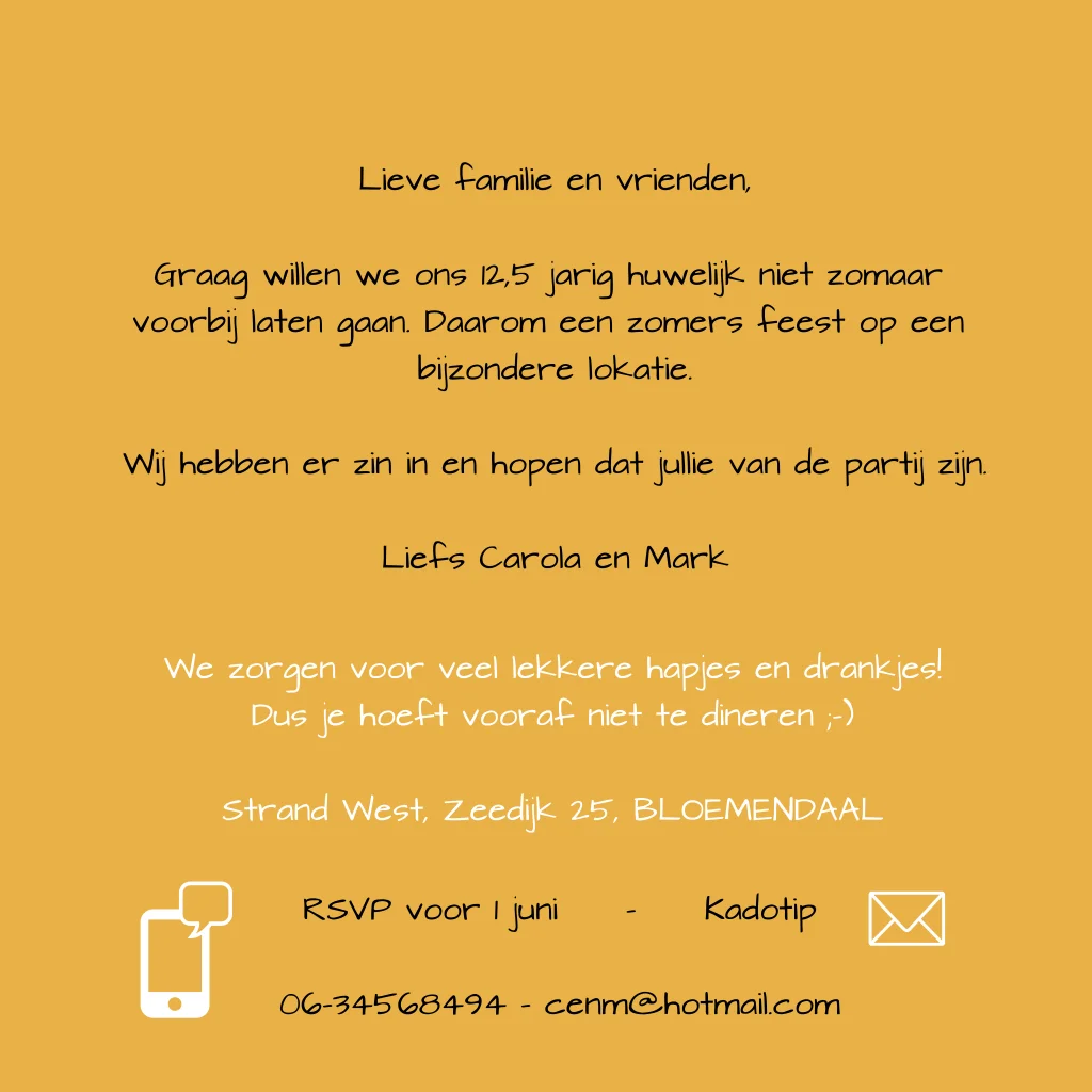 Jubileum uitnodiging met harten voor jullie 12,5 jarig huwelijk. Pas de foto en de tekst aan om het persoonlijk te maken.