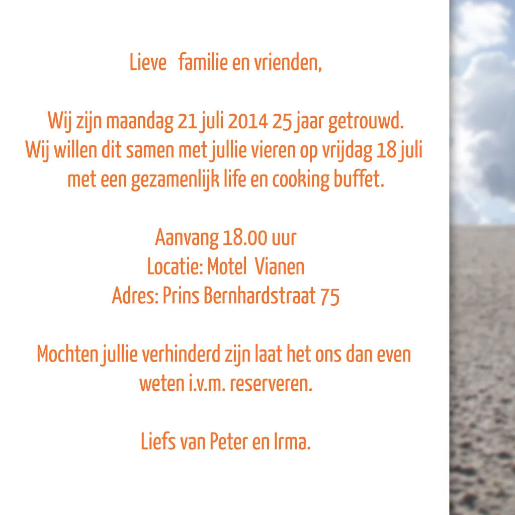 Uitnodiging 25 jaar getrouwd met strand en wegwijzer
