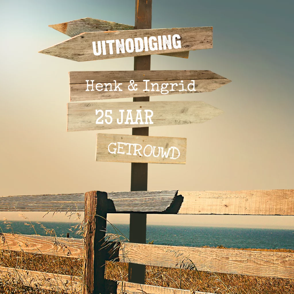 Uitnodiging 25 jaar getrouwd met strandpaal
