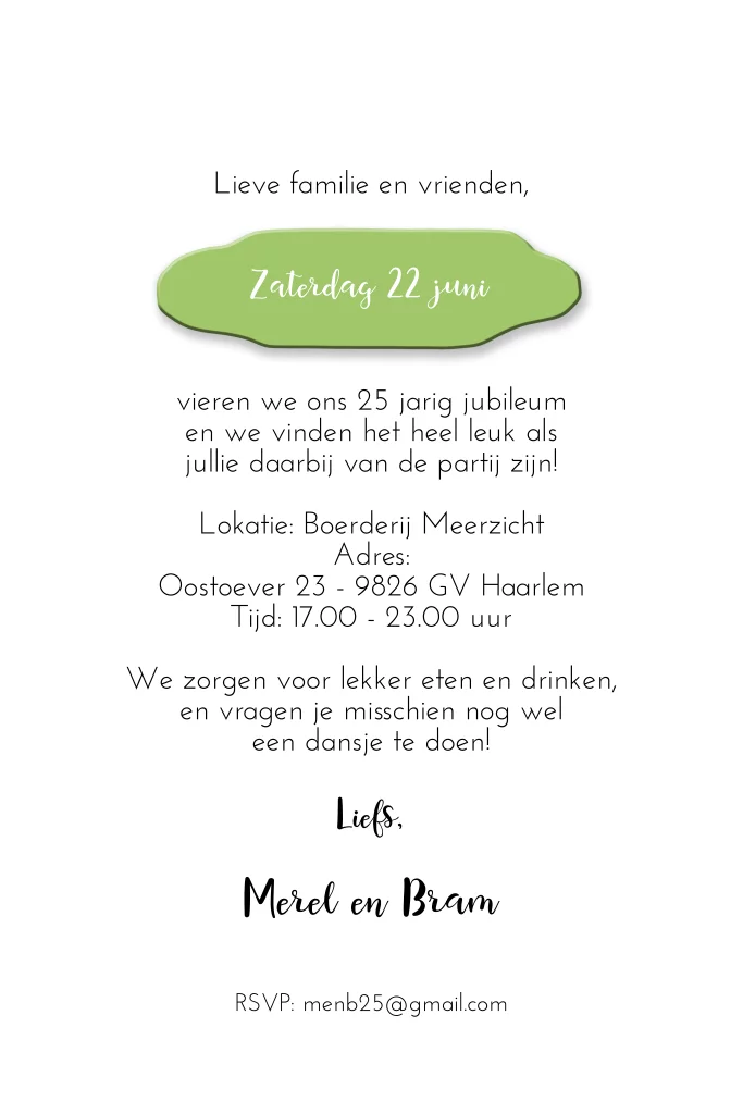 Botanische 12,5 jubileum uitnodiging met houten bordjes