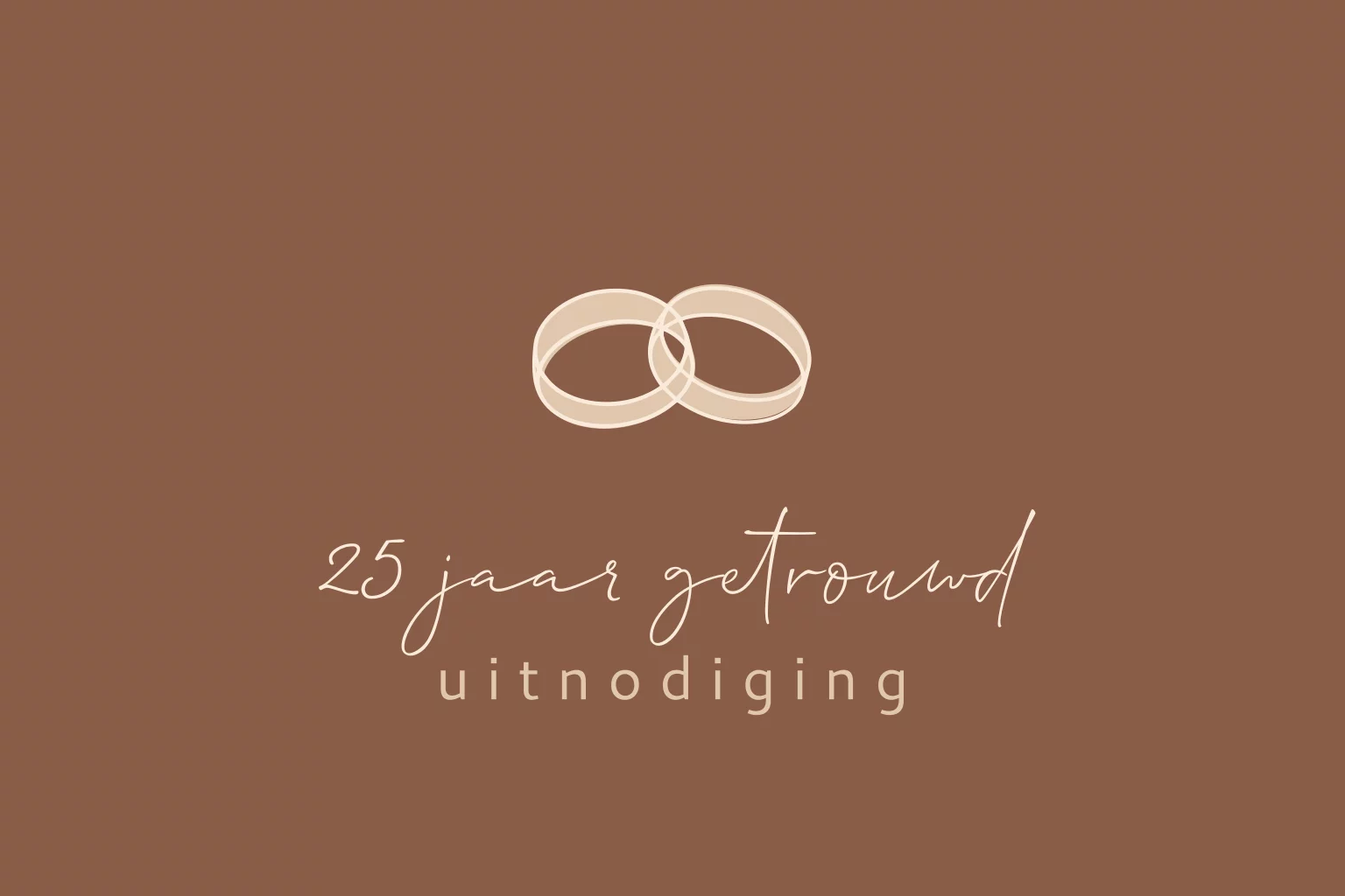 Een kwarteeuw liefde verdient een stijlvolle viering! Creëer je eigen chique jubileumkaart in bruin met elegante ringillustraties en sierlijke tekst.