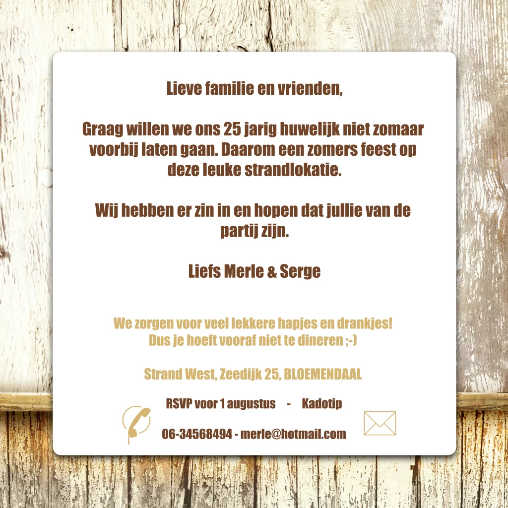 Mooie uitnodiging voor jullie zilveren bruiloft. Deze kaart is voorzien van een sfeervolle houtlook.