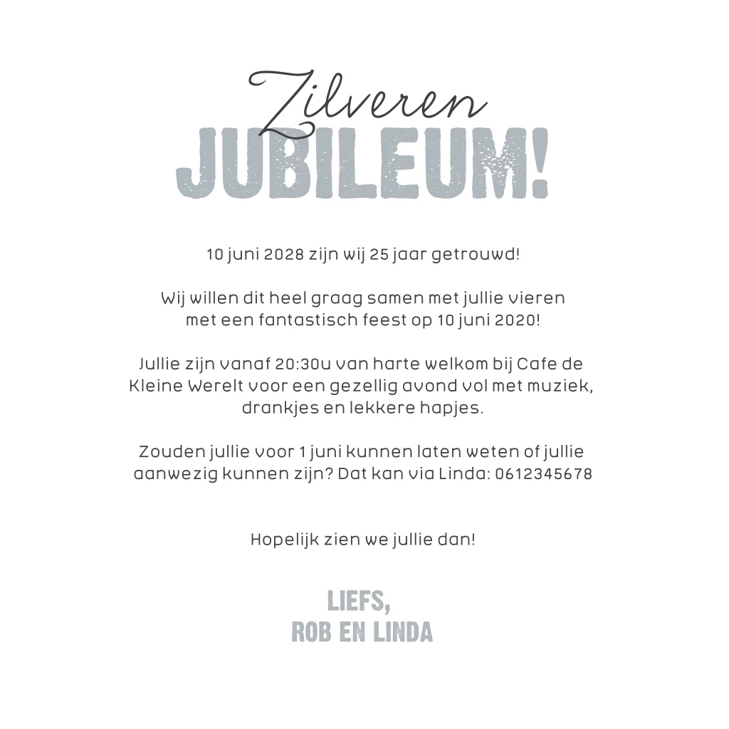 Party uitnodiging 25 jaar getrouwd met zilveren letters