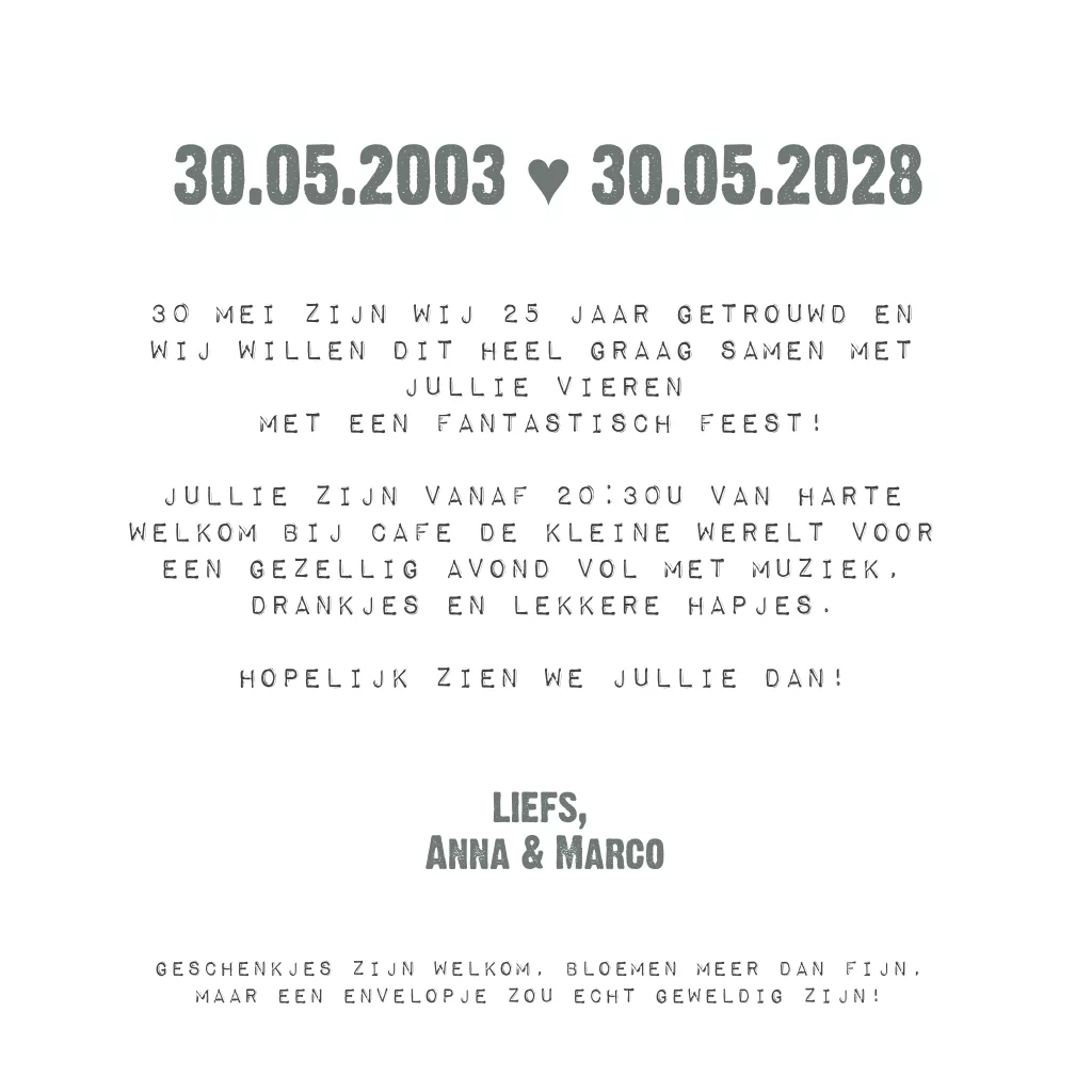 Uitnodiging 25 jaar getrouwd met zilveren sterren