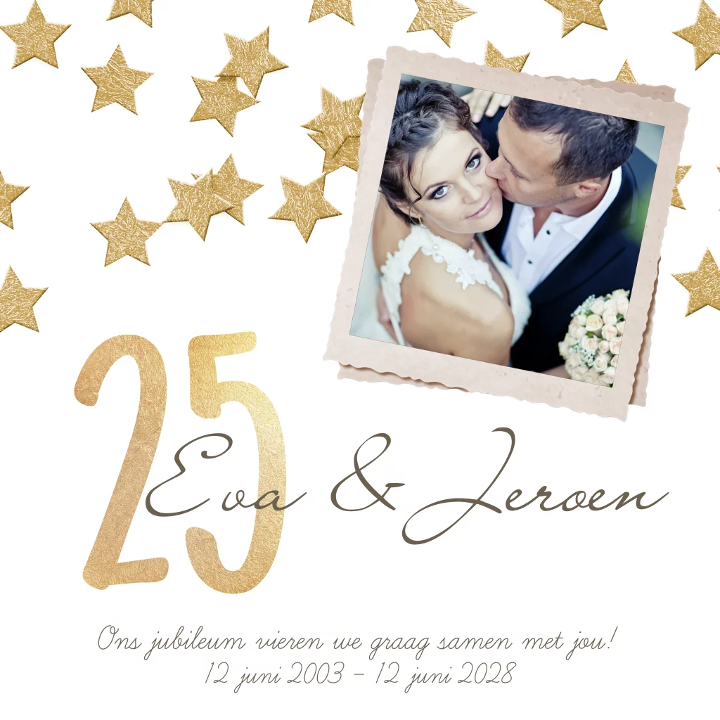 25 jaar getrouwd uitnodiging met gouden sterren en foto