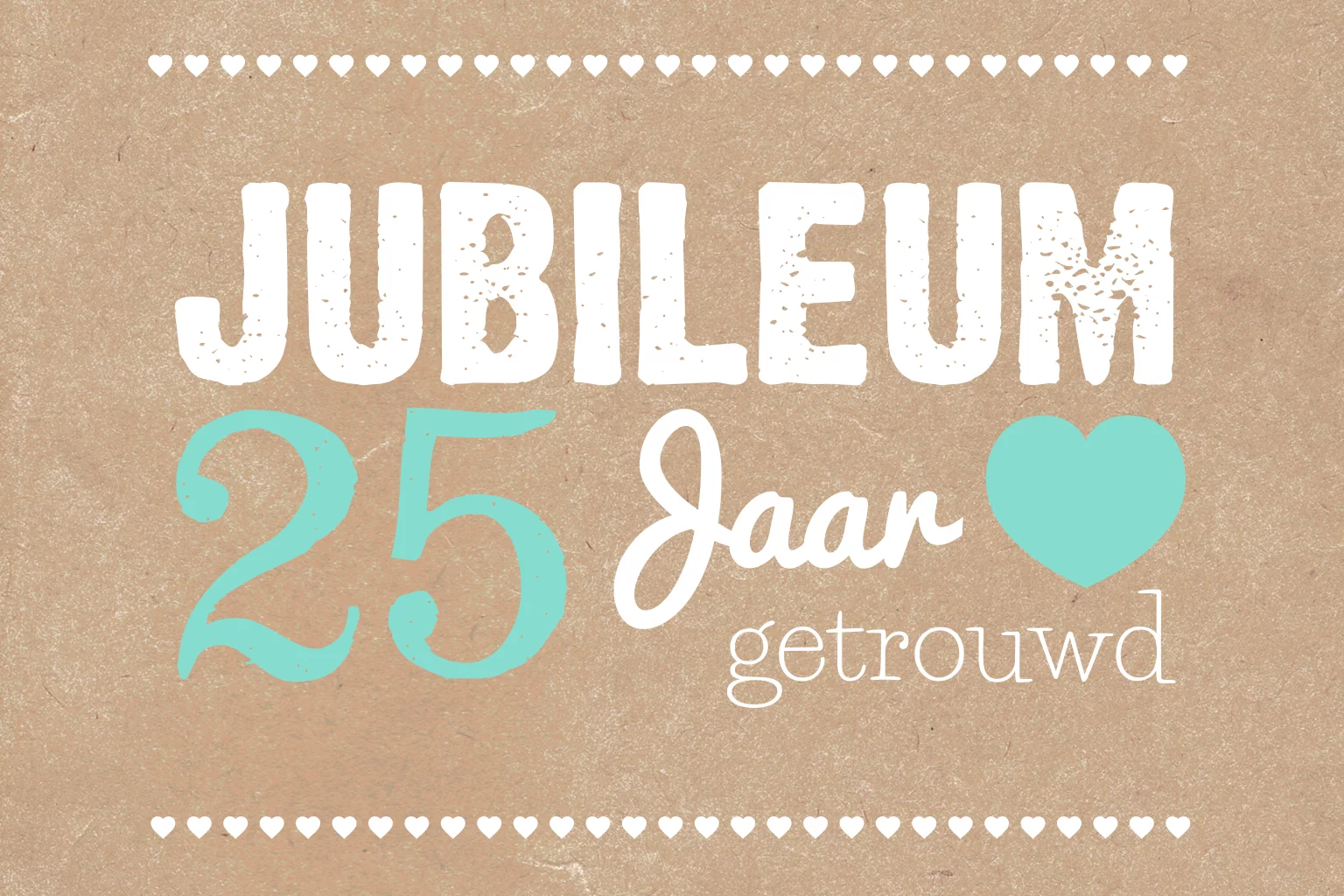 Mooie strakke maar vrolijke uitnodiging voor jullie 25 jarig jubileum. Het mintgroene springt uit de kraft achtergrond. Gaaf ook met een bijpassende envelop.