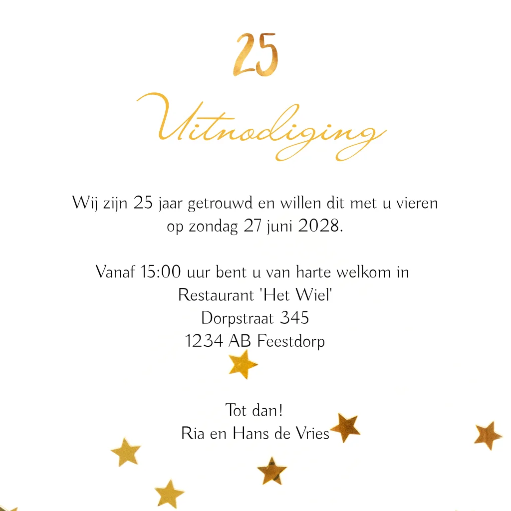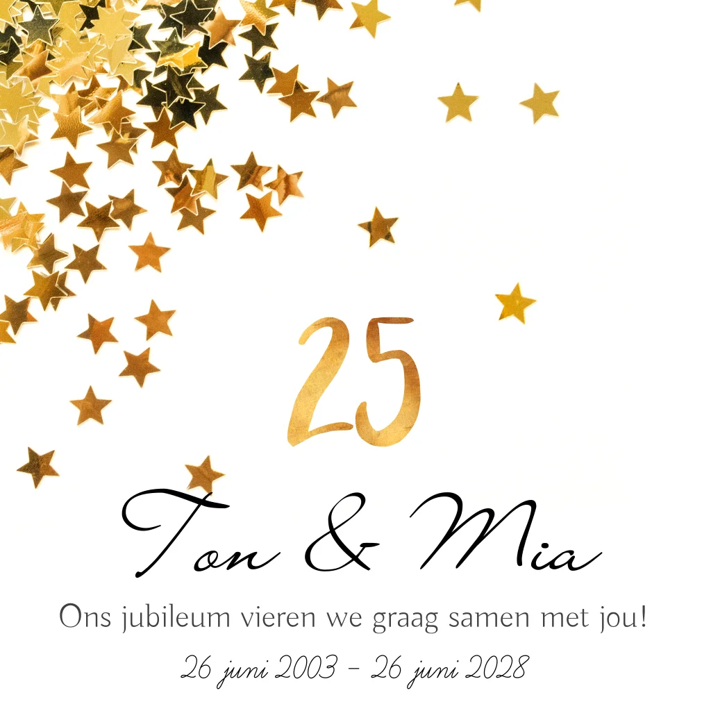 Uitnodiging 25 jaar getrouwd met gouden sterren confetti