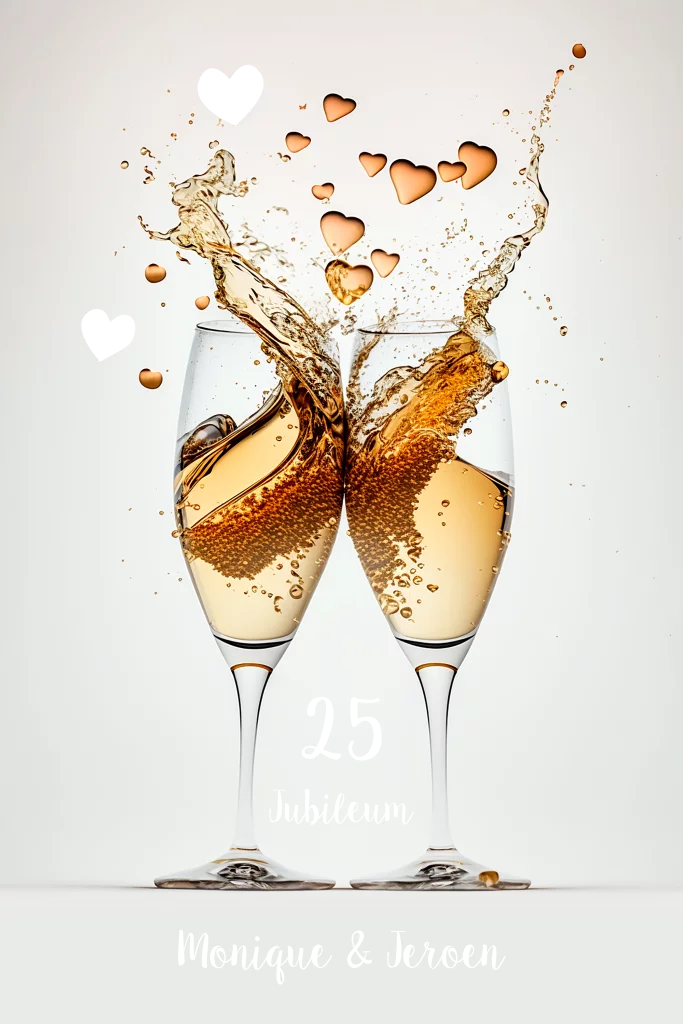 Uitnodiging Jubileum champagne met hartjes - folie print