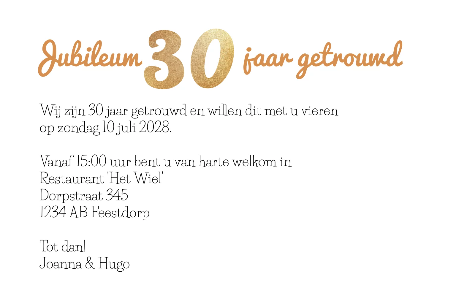 Uitnodiging 30 jaar getrouwd met oranje foto hart