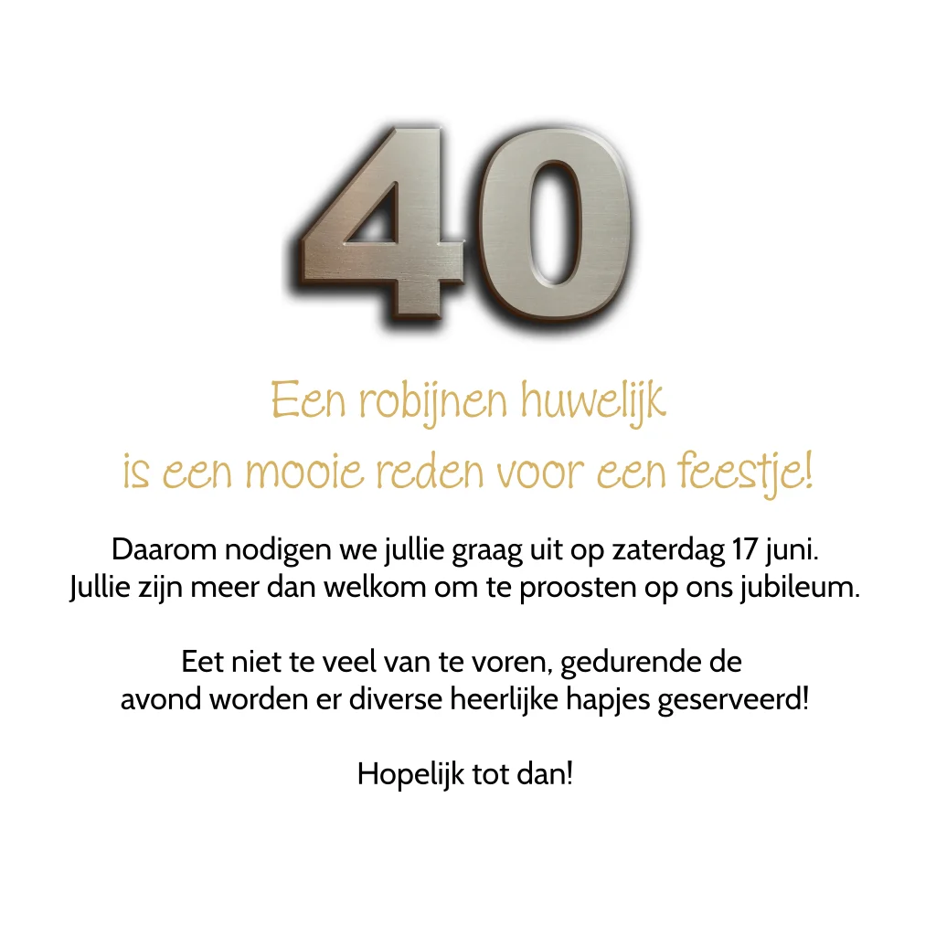 Uitnodiging huwelijksjubileum met zilveren 40 en hout