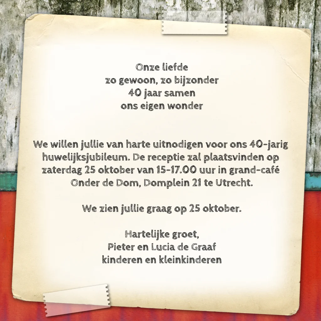 40 jaar getrouwd? Vier het met deze trendy en elegante kaart.