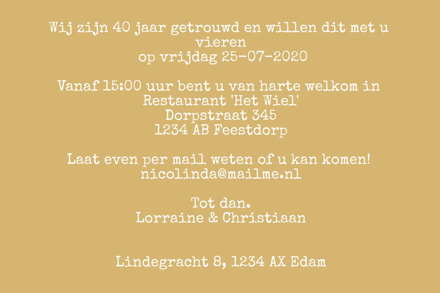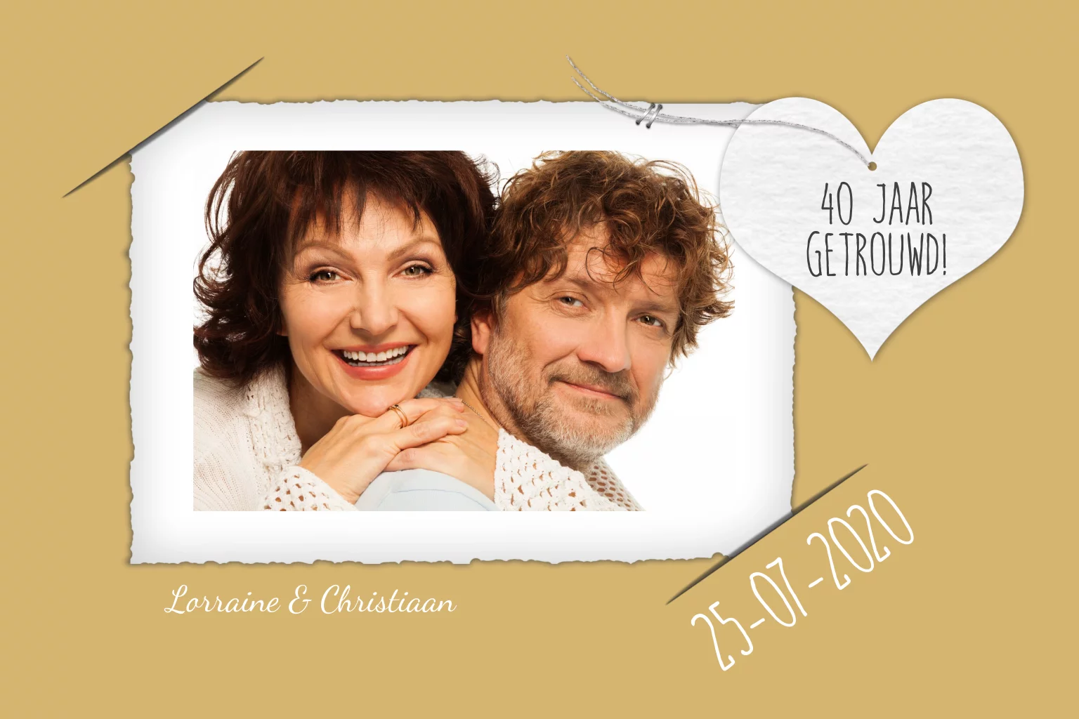 Een mooie trendy jubileumkaart met een hart en foto. Je kan deze leuke kaart met hartjes helemaal naar wens aanpassen.
