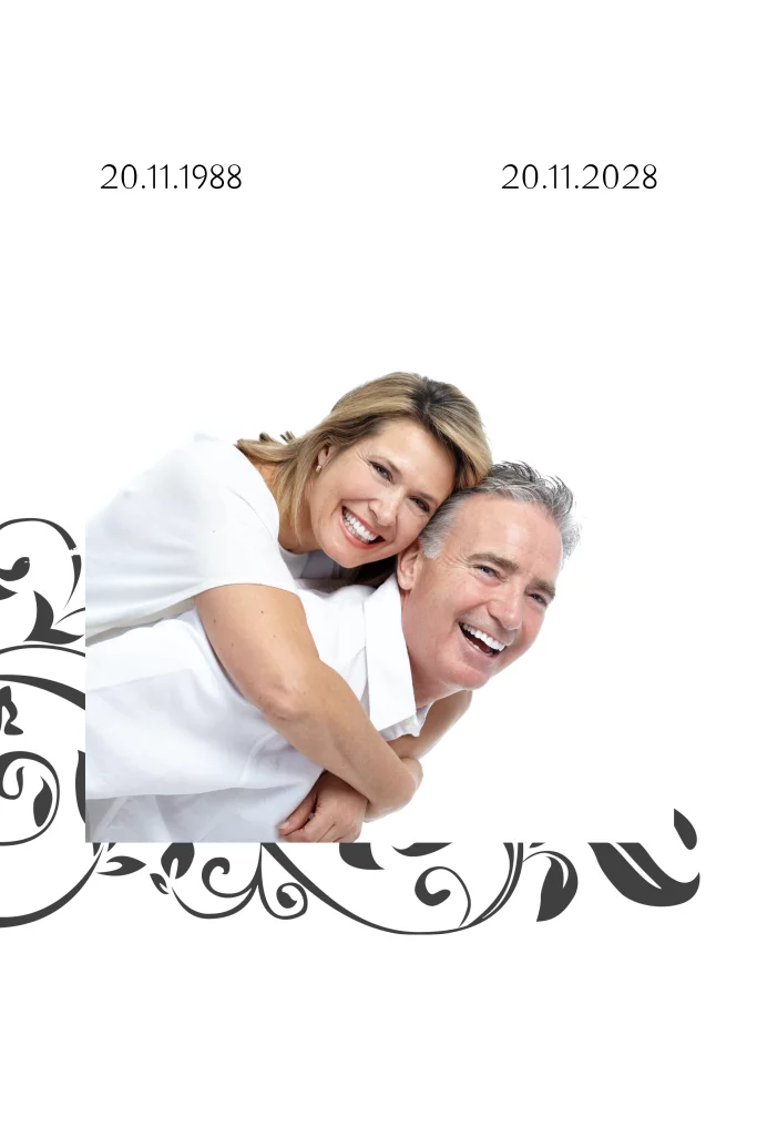 Sierlijke en persoonlijke 40 jaar getrouwd uitnodiging! De foto van jullie samen wordt ondersteund door mooie zilveren lijnen. Gaaf in zilver kleurige tinten. Maak het helemaal af met een zilveren envelop.