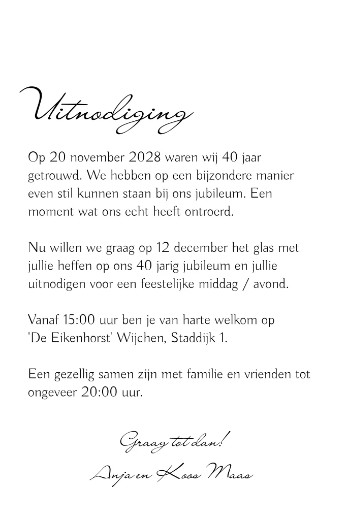 40 jaar getrouwd uitnodiging met sierlijke lijnen