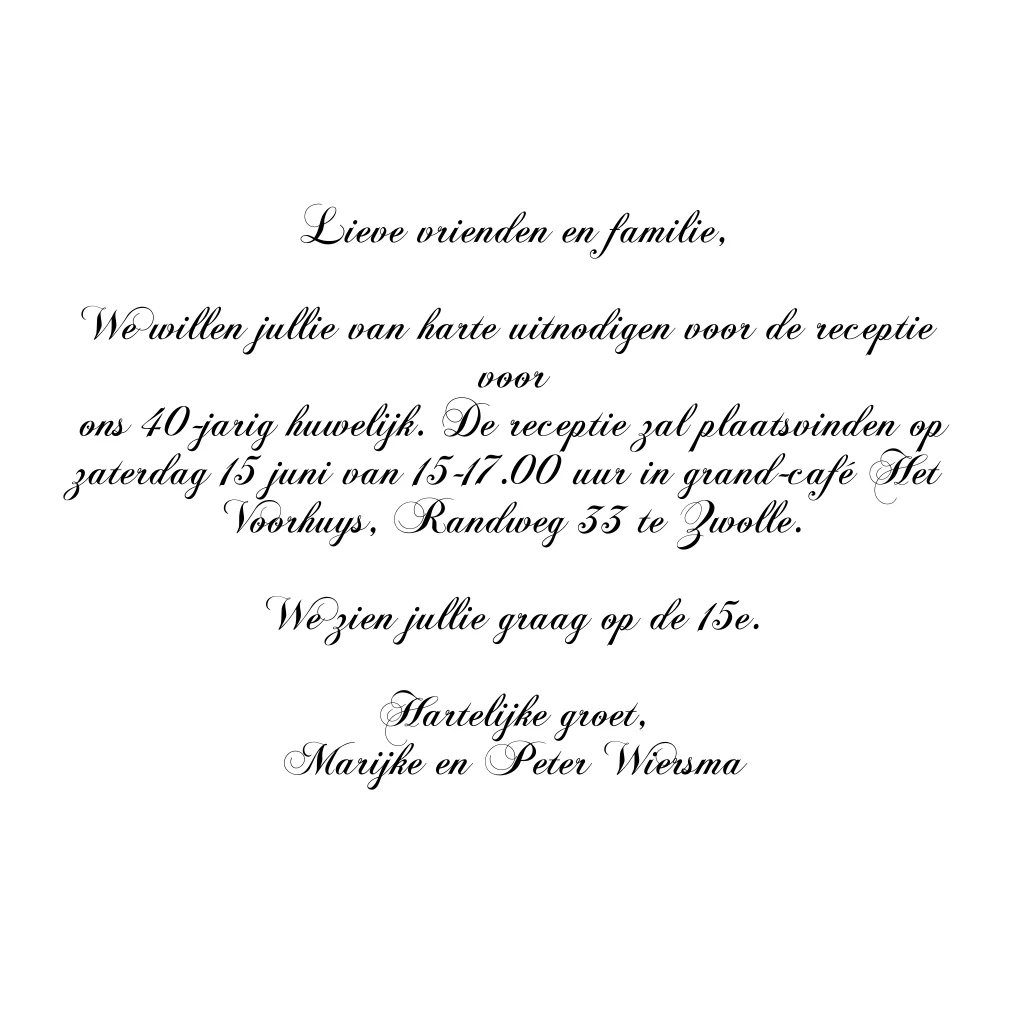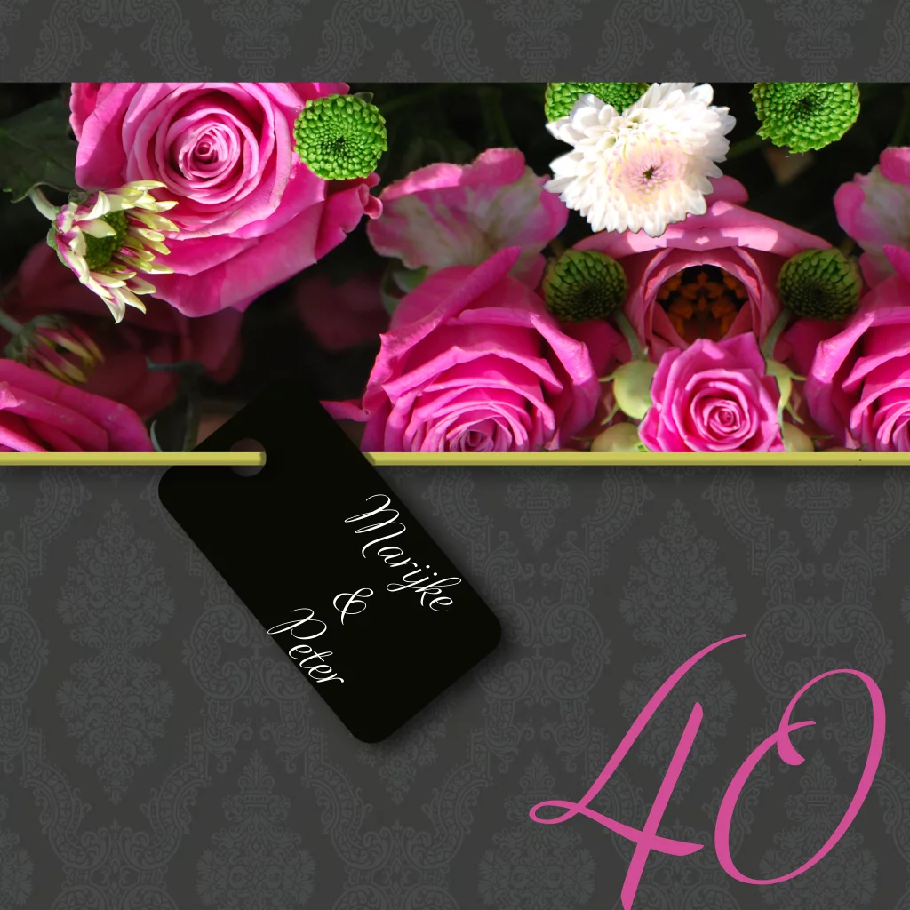 Chique uitnodiging 40 jaar huwelijk met bloemen